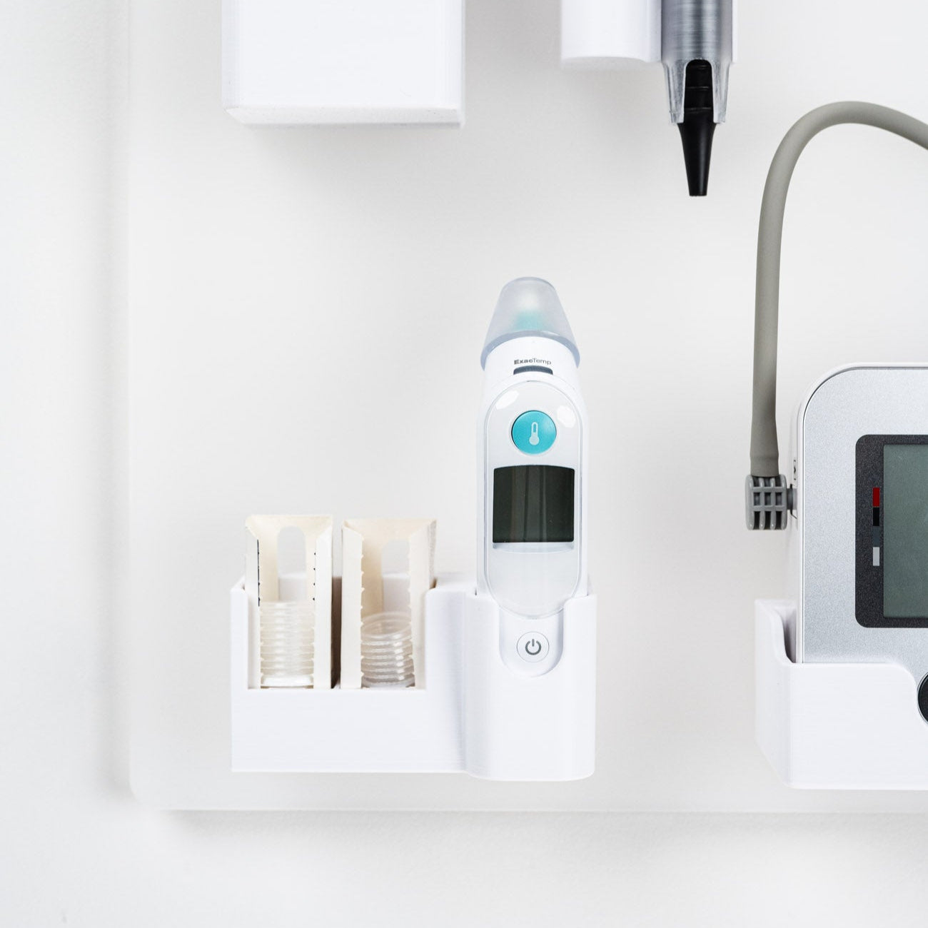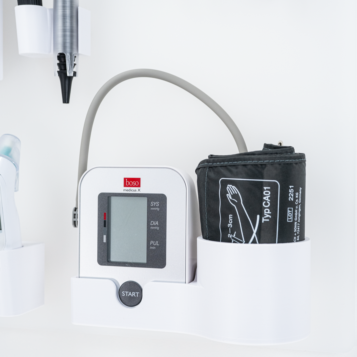 - Blutdruckmessgerät, Otoskop, Thermometer, Pulsoximeter